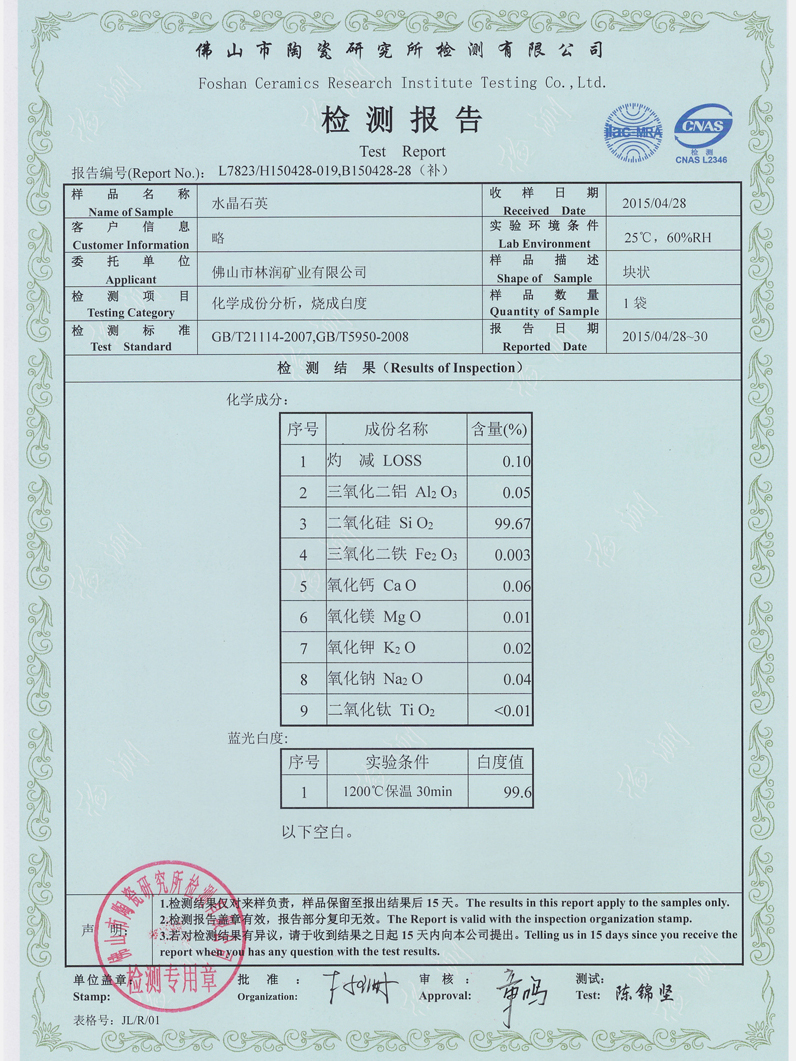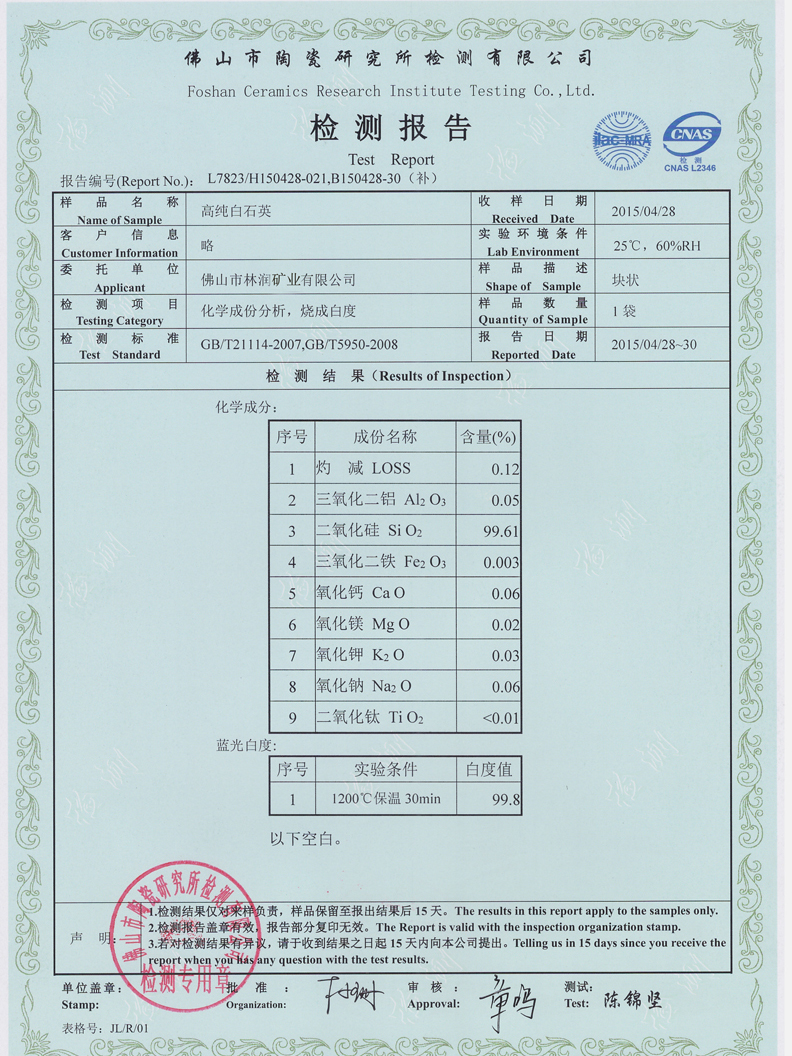 本公司目前拥有广东、广西、江西、湖南等地区矿质稳定、存量大的石英矿源,依托当地优质丰富的石英岩矿资源,凭借先进的技术设备和生产工艺,与开采大量石英矿、供应石英加工的企业建立了长期稳定的合作伙伴关系。本公司坚持“诚信、创新”的经营理念,坚持走专业化、规模化、标准化的发展道路,以优质的产品、合理的价格和完善的售后服务一直深受客户好评。