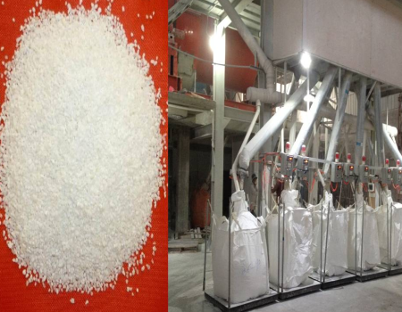 人造石英石专用石英精砂、粉是由天然优质无辐射石英矿,经过人工去除表面黄褐色外皮,再破碎,筛分加工而成,具有白度高、流动好、省树脂等优点,全工艺中无酸洗,杜绝了因使用酸洗石英粉导致人造石材的“返黄”现象。本产品具有良好耐候性和树脂浸润性,不含结晶水、不影响树脂固化;粒度分布合理,能有效减少物料聚沉、避免产生密度差和内应力,保证热膨胀和冷收缩的均匀。其外观呈现纯白色,通透明亮,材质坚硬,是绿色环保型人造石英石、微晶石、石英瓷砖等的理想基材。